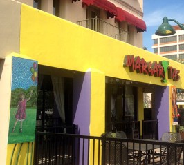 This is my mini mural, Hold On. It was on public display at this location, in front of Margaritas restaurant on the corner of Center and Main St. in Mesa for one year. Painted with a single continuous line throughout the whole work.